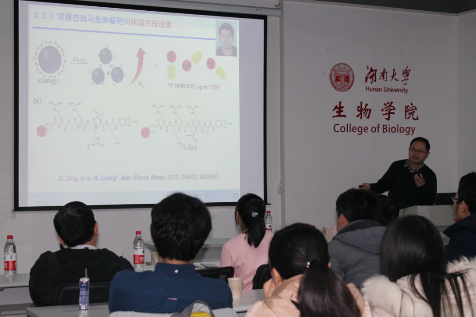 进行学术交流与访问,并作了精彩的学术报告,报告题目为“细胞内自组装在生物成像分析中的应用”,何晓晓院长主持报告。
