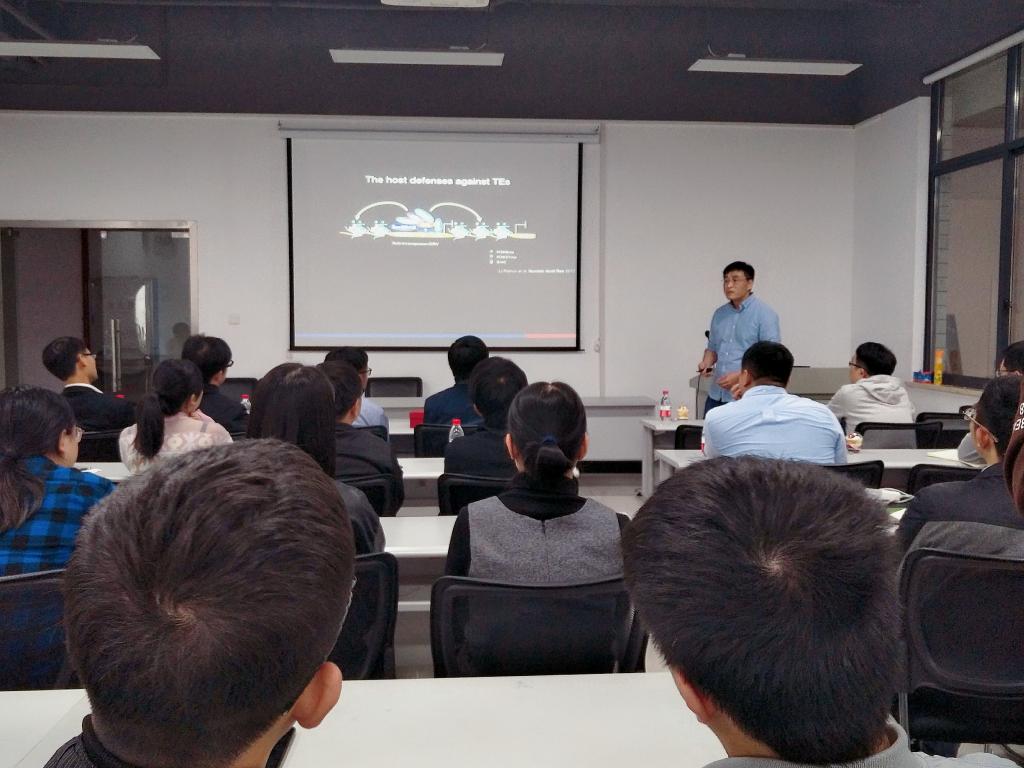 袁教授的报告新颖有趣,他首先给大家推荐了一本与生物进化相关的英文书籍《The Selfish Gene》,并以此为引子,过渡到其科研领域:DNA重复序列在真核胚胎发育和癌症表观遗传调控中的关键作用。袁教授分别介绍了PRC complex介导的H3K27me3在果蝇早期胚胎发育(细胞分裂)中的重要作用,以及结直肠癌中DNA重复序列受SWI/SNF complex调控重新激活的故事。袁凯教授的精彩报告引起了在场师生们的广泛讨论和积极提问,体现了91成人网