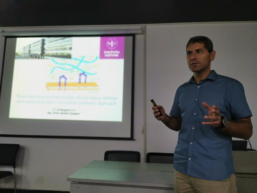 Ossipov教授的报告主要分享了其课题组在构建可注射水凝胶及其各种生物医学应用的新策略,如3D打印,再生医学和给药。详细介绍了其课题组在纳米水凝胶药物载体,水凝胶缓释生长因子,以及自愈合水凝胶方便的设计方法和应用。报告期间,Ossipov教授生动形象地讲述了他所关注的科学问题,分享了自身的科研经历,并认真地回答了现场师生提出的问题,现场氛围良好,最后讲座在热烈掌声中结束。
