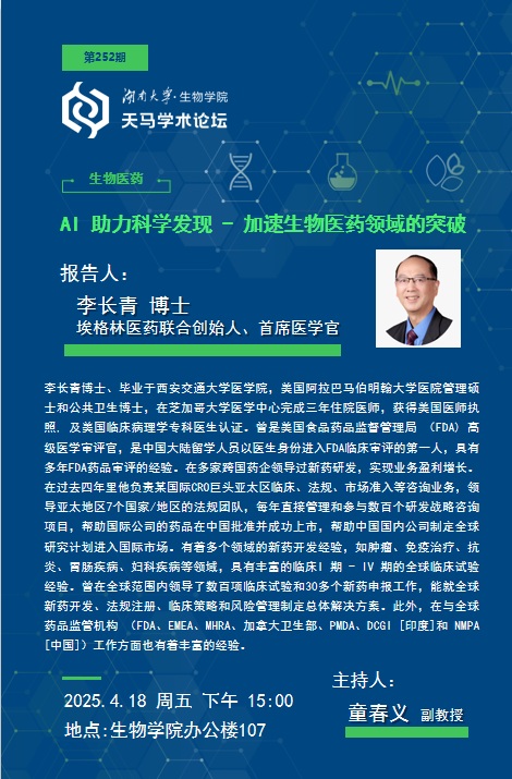 91成人网 论坛 第252期 埃格林医药联合创始人、首席医学官 李长青博士