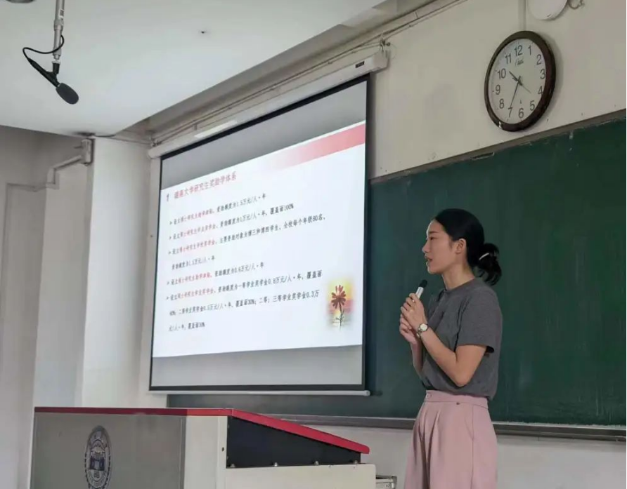 冉老师引导全体学生对研究生的日常管理和纪律教育进行学习,促使学生更好地遵守学校的规章制度,进而帮助学生养成良好的学习行为习惯。