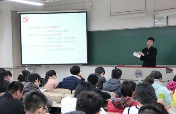 在正式开始之前,全体师生一起观看了习近平总书记在国家博物馆参观《复兴之路》展览时的讲话视频和习近平同志当选国家主席后的讲话视频,对“中国梦”的提出和阐述有了基本了解。随后在热烈的掌声中,高书记为积极分子开始上课,题目是《共筑中国梦,开创依法治国新局面》,详细介绍了“中国梦”的含义,指出实现中国必须走中国道路、必须弘扬中国精神、必须凝聚中国力量。随后,高书记介绍了群众路线是实现中国梦的最大法宝和党的群众路线教育实践活动,介绍了社会主义核心价值观的内涵和实践路径,介绍了十八届四中全会精神和开创依法治国新局面的任务和重大意义,介绍了“四个全面”的战略布局,对全面建成小康社会、全面深化改革、全面依法治国、全面从严治党这“四个全面”和相互之间关系进行了详细解读,让入党积极分子对这些内容有了初步认识和理解。