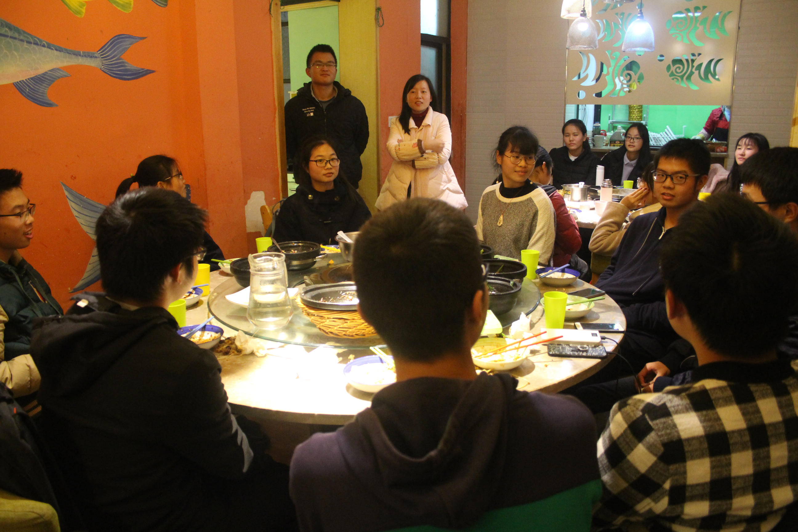 在愉快的聚餐过后,班长胡俭对近两个月来班委工作与同学们的表现进行了总结,对表现优秀的同学进行表扬,并希望大家砥砺前行,共同聚力,为班级取得更多荣誉。