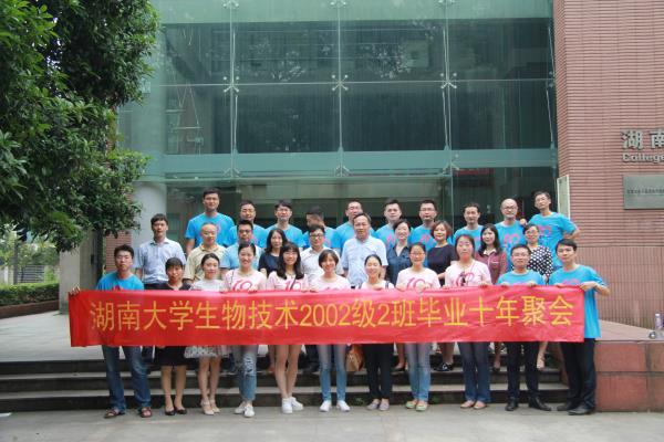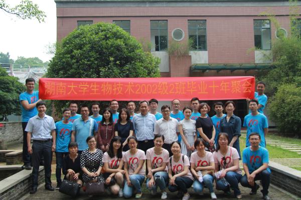 生物技术专业首届(2002级)毕业生回到母校,组织毕业十周年聚会。此次聚会中校友们安排了非常丰富的活动,包括游览岳麓书院、重温校园,参观91成人网