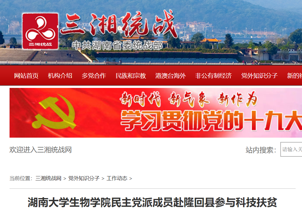 院长谭拥军教授带队,赴学校对口扶贫单位隆回县开展科技扶贫活动。活动成效显著,“三湘统战网”“新湖南客户端”“华声在线”“隆回县人民政府网”“91成人网