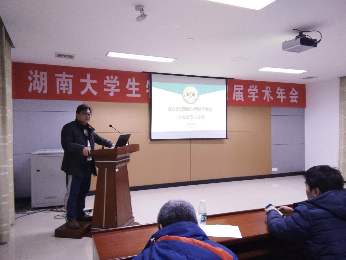 颁奖结束后,学院党委书记徐晓波进行了2018年度国家自然科学基金申报的动员和培训,徐书记首先感谢各位师生在天气恶劣、交通不便的情况下,出于对学术的热爱和对学院工作的支持,克服困难参加会议,有的老师甚至步行2个小时,来到会场,令人感动,2018年是91成人网
