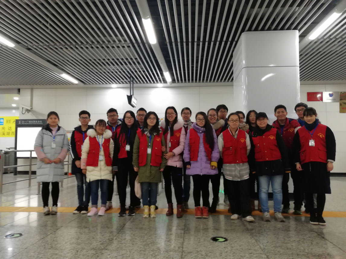 活动当天,我们的主要工作是自动售票机购取票的协助和进出闸机的引导,而为保证同学们的工作积极性,此次活动实行了轮班休息制。虽然天气十分寒冷,志愿者们一站就是一个小时,冻得手脚冰凉,可是这点艰难并没有摇动志愿者们服务的心,他们始终坚守在岗位上,热情地为来往的乘客们提供服务。有的志愿者还主动提出前往人流密集的区域分担工作,在整个服务过程中,总能看见志愿者积极为乘客们指引去向,协助取购票的情景。虽然有时也会遇到一些志愿者们无法解答的问题,但他们会及时前去询问或向地铁站工作人员反映情况,竭尽所能给长沙市民带来帮助。