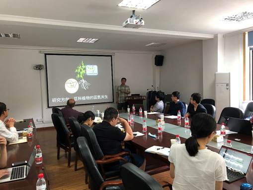 邓磊老师以“探索研制广谱抗流感病毒疫苗”为题,向大家简要介绍了流感病毒的相关研究背景、现状以及目前的研究热点。潘怀荣老师以“追踪黑暗中的交易”形象生动地比喻自己课题组目前的研究方向——揭示豆科植物根际固氮微生物和植物之间的交流互作。卓睿老师根据自己的研究方向,向大家介绍了白腐真菌在环境修复中的应用、目前的发展现状和未来发展方向。就着午餐会的空隙,大家边吃边聊,对双方感兴趣的问题进行了深入探讨。