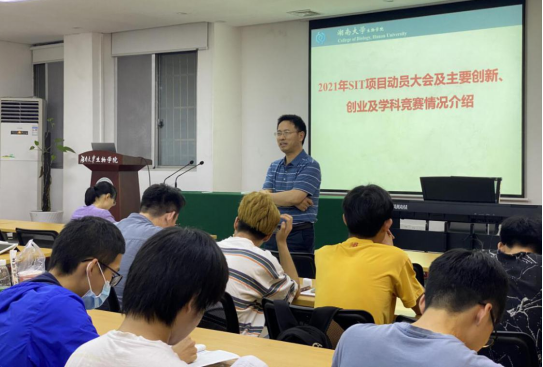 随后,郭主任对学生们关心的项目选题、导师选择、团队组建、经费支持等问题作了细致的讲解,同时指出了大赛的注意事项及各时间节点,鼓励同学们要大胆尝试、厚积薄发、勇于探索。