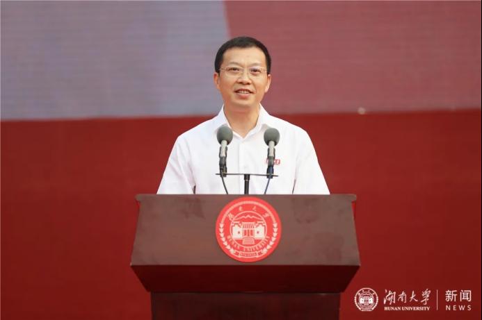 开学典礼给我最大的感触就是看到了湖大的活力,看学长学姐们主持、唱歌,很有激情,让我对以后的大学生活更加期待了。