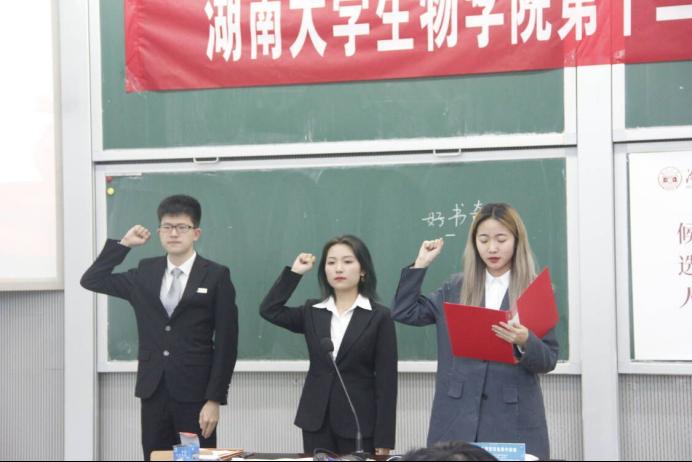第十二届学生会主席团成员。接着三人进行了庄严宣誓。