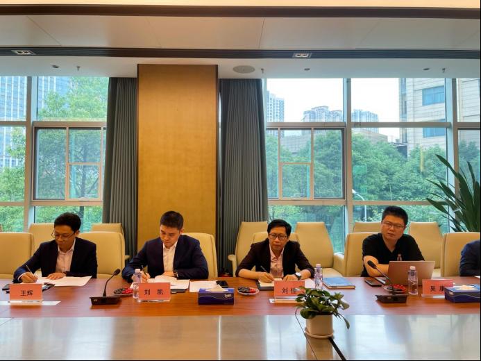 双方在圣湘生物会议室进行座谈,圣湘生物科技股份有限公司副总经理刘凯、生命科学研究院院长,校友刘佳、生命科学研究院产线总监,院友吴康等出席座谈活动。
