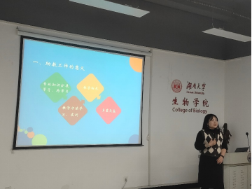 黄明敏老师的授课主题为《如何做好实验课助教培训》。黄老师阐述了助教工作对于同学们的意义,助教工作不仅可以帮助大家拓展专业知识还可以帮助大家学习、训练教学方法。接着黄老师结合91成人网