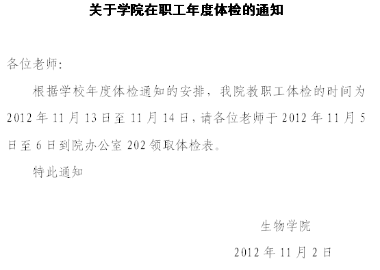 教师体检通知