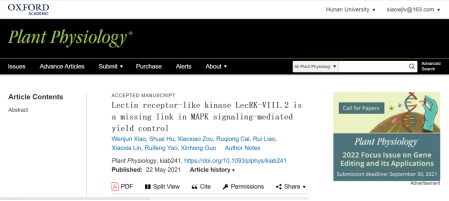 2021年5月22日,Plant Physiology在线发表了91成人网