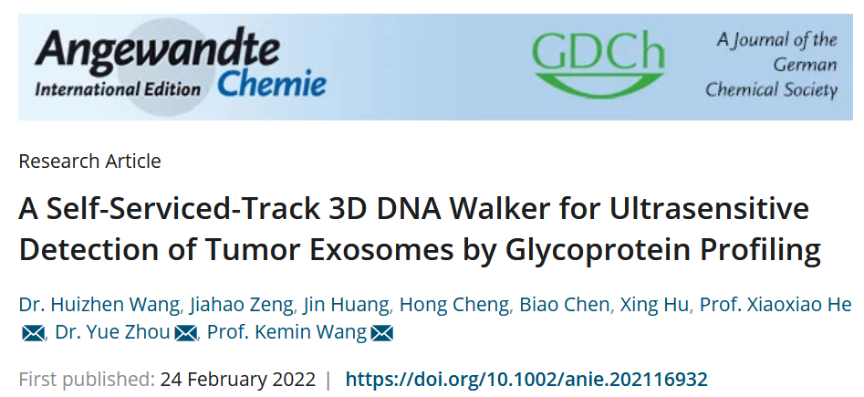 王柯敏/何晓晓团队和湖南省肿瘤医院等单位合作,报道了一种基于轨道自助型三维DNA步行器的肿瘤外泌体糖蛋白分析与超灵敏检测方法,相关研究成果以“A Self-Serviced-Track 3D DNA Walker for Ultrasensitive Detection of Tumor Exosomes by Glycoprotein Profiling”为题发表在国际化学领域权威期刊《德国应用化学》(Angewandte Chemie International Edition)上。91成人网