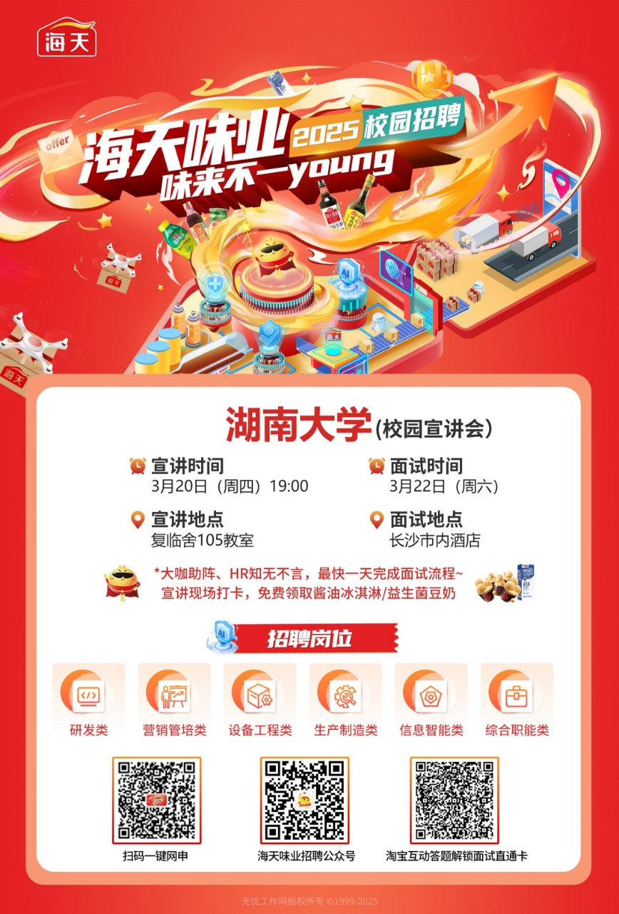 【网申入口】①招聘官网://haday.hotjob.cn②海天味业招聘公众号
